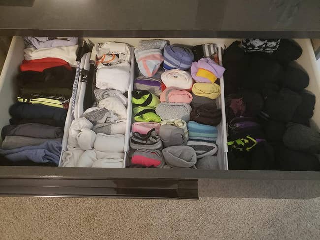 We hope you love our recommendations! While every product is independently chosen by our editors, BuzzFeed and our publishing partners may collect a share of sales or other compensation from the links on this page. You can read more about how our affiliate partnerships work in our Editorial Standards & Ethics Guide. Number 14 would've come in clutch during my "hoodie" phase in high school. Promising review: "My parents have this system. I cook a lot and my spices were all over the place and hard to locate. This probably explains why when I finally got organized I had doubles (ashamed to say triples as well) of some items. On a recent visit to my parents, I checked out their spice rack. As soon as I got home, I ordered two, and they worked wonderfully! Love the stickers!" —Jeffrey H. Get it from Amazon for $29.99+ (available in two sizes). This holder has five spring-loaded slots that can be adjusted to fit any handle size and six retractable hooks. Promising review: "These broom holders are amazing. We bought two (put one in our laundry room utility closet and one in our garage) and love them so much we bought a third! Super easy to install and super easy to use. Love that there are also hooks that fold out! Keeps our long-handled items so much neater and easier to reach." —JennN. Get it from Amazon for $17.97 (available in four colors and multipacks). Promising review: "These are the greatest for organizing stacks of clothes in deep drawers. Installation is quick and easy, and they can be moved if you decide to reconfigure. I love this product! I highly recommended." —Lou Powers Get a pack of four from Amazon for $19.99. Promising review: "Where has this been my entire life? I love that the shelves are adjustable, so I can fit a variety of wraps and other household cleaning boxes in them. Easily take out the needed box, and it goes back. My cabinet is finally neat!" —Jill R Promising review: "I thought this would be handy and help with space management in a small apartment. It turned out to be absolutely perfect. It keeps the silverware clean and stores a lot in a very small space. I love it. I got two because I inherited my grandmother's silverware, so there are two types of forks and two types of spoons, and I wanted things to be separate and organized. Two organizers fit side by side in a standard apartment drawer. After getting these, I picked up the knife organizer, and it’s just as handy and useful." —Magpie Get it from Amazon for $11.98+ (available in two options). Promising review: "Great for organizing the pantry, craft rooms, and bathrooms. Finally have a way to keep all the junk off my counters. Pockets are huge, hooks leave a low profile (so no issue with scratching), and seems very sturdy for holding all my junk so far (it's mostly holding way too many hair products in my bathroom at the moment). Love that this is clear so you can see everything." —Breanna Get a pack of two from Amazon for $16.87. Promising review: "I was tired of bags floating around under the sink. This is a cute way to keep things contained. Easy install, durable, easy to grab bags from. Recommend to anyone trying to declutter and save space!" —Allison Ryan Get it from Amazon for $23.99 (available in two colors). Promising review: "Reusable water bottles are great, but they are such a pain to store since they come in all shapes and sizes. They’re tall, they can’t nest inside each other, and if you lay 'em on their sides, they just roll everywhere. This storage rack efficiently eliminates that problem! The three-tier version was an awesome fit for my pantry. Will be getting a second one soon; I have collected so many free water bottles over the years! Might even consider using it elsewhere, like for my vinyl rolls. Easy to set up — I did it without the instructions in just minutes. Highly recommend, worth the value." —Momo Kariño Get it from Amazon for $19.99+ (available in two colors and three styles). Promising review: "Yes...I have too many clothes. I LOVE my leggings. These saved me soooo much room! Now I have much more space, AND I can see them all more easily." —Larry Seymour Get a pack of two from Amazon for $12.99+ (available in seven colors and three pack sizes). Promising review: "These hangers are great for organizing sports bras! Easy to use, and they hold a good amount of weight. They work even if you put the bras on both sides so it holds 16 instead of just eight. Recommend spreading a few inches apart so as not to put too much weight on the clothing rack." —JSmith Get a two-pack from Amazon for $13.99+ (available in four colors and five set sizes). Promising review: "Loves these for labeling my garage, basement, and closet bins! They stick to everything! I’m buying more!" —Emily Get a pack of 30 from Amazon for $7.65+ (available in various sizes). Promising review: "I have lots of plastic storage boxes in the basement, well-organized, but I tended to forget what's where, so I decided to see if there's such a thing as removable labels. Sure enough, found them. The labels are larger than I expected, but it's nice to be able to write on them in large letters. They're pretty easy to peel off — not as easy as a Post-It note, but the label does come back off in one piece. I smile every time I see my labeled boxes and know where everything is." —SG Get a pack of 150 from Amazon for $7.49 (available in three quantities). Check out how they work on TikTok here! And PS: Wonder Hanger is a small biz! Promising review: "I wish I had taken the time to take a before and after pic, because I have so much more room in there now than I did before. I found the cutest tops in there that I had completely forgotten about because my clothes were crammed so tightly in the closet. Most of the time, I felt like I had nothing to wear, LOL, and now, I know exactly what I have, and it's even organized by sleeve length and color. I would definitely buy again and actually plan to buy