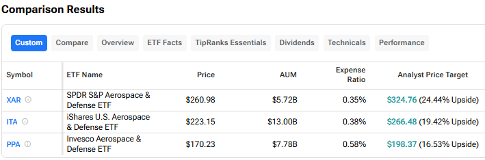 President Donald Trump could soon face a major decision on how far to take the conflict with Iran, with mid-April shaping up as a key turning point, Eurasia Group’s Firas Maksad told CNBC. As more U.S. military assets arrive in the region, the administration will need to decide whether to escalate further or begin pulling back. Maksad explained that this decision will depend heavily on how the situation develops in the coming weeks, as well as how prepared the U.S. is on the ground. Nevertheless, investors may want to consider hedging against any further escalations with the following defense ETFs: Unlock hedge fund-level data and powerful investing tools for smarter, sharper decisions Discover top-performing stock ideas and upgrade to a portfolio of market leaders with Smart Investor Picks Invesco Aerospace & Defense ETF (PPA) iShares U.S. Aerospace & Defense ETF (ITA) SPDR S&P Aerospace & Defense ETF (XAR) At the same time, Maksad said that Trump’s recent remarks were mainly for a domestic audience rather than to signal a real change in strategy. From a policy standpoint, he noted that the president largely repeated what was already expected: that the conflict would likely continue for at least two to three more weeks. In addition, the official goals remain focused on weakening Iran’s military capabilities, such as its missile program, navy, and remaining nuclear infrastructure. However, Maksad also highlighted a less openly stated objective, which is the possibility of taking control of Iran’s oil. Moreover, the timing of any major move will likely depend on the arrival of key military assets, including the USS Bush, Marine units, and elements of the 82nd Airborne, which are expected by mid-April. Meanwhile, the administration appears to be carefully managing its messaging to avoid sharp swings in oil (USO) and stock prices. As a result, Maksad suggests that those who are trying to predict the next move should focus more on military activity than on public statements. Turning to Wall Street, out of the three ETFs mentioned above, analysts think that XAR has the most room to run. In fact, XAR’s price target of $324.76 per share implies 24.4% upside potential. Disclaimer & DisclosureReport an Issue