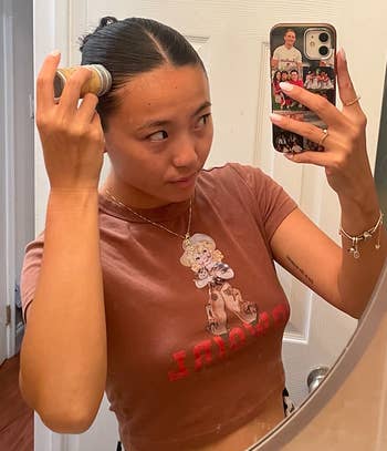 I started doing slicked-back buns because I got curtain bangs and HATED the way they looked on me. When I first started out, I used styling gel, which refused to keep my hair in place because of my strange hair part. I kid you not, it took me TWO hours to finally kind of get the results I wanted. Then, I saw this miracle product being used all over TikTok, along with the Dae styling cream (which I never bought because it's quite $$$), but turns out, I didn't even need it! I just used this wax stick all over my head, and my hair did not budge the entire day. Plus, I have so many baby hairs and flyaways, and this miracle stick kept 'em all at bay. I will admit, it's quite difficult to wash out of your hair and may need a few rounds of shampooing, but I started using this Kristin Ess clarifying shampoo, and it did the trick!