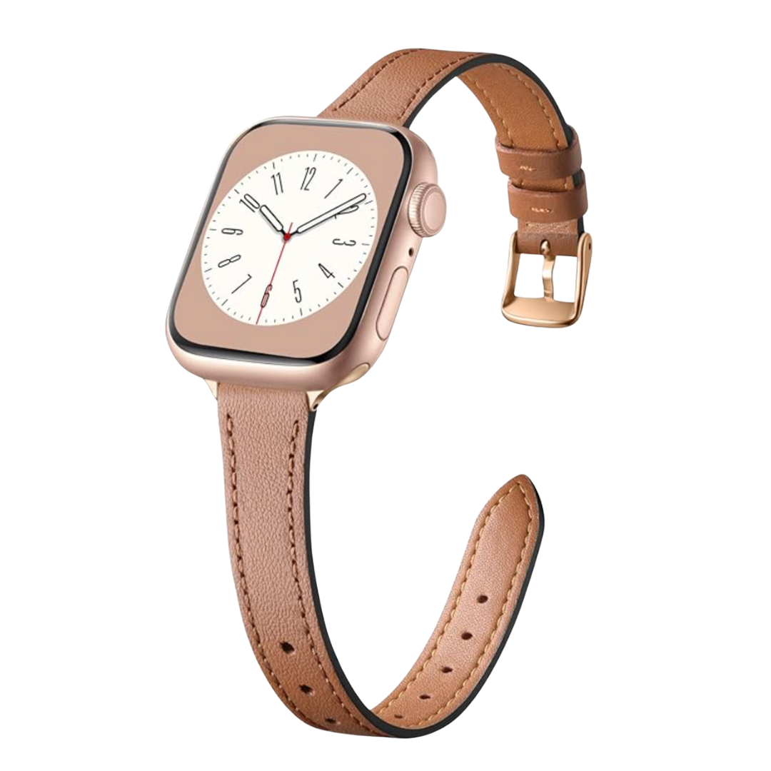 We hope you love our recommendations! While every product is independently chosen by our editors, BuzzFeed and our publishing partners may collect a share of sales or other compensation from the links on this page. You can read more about how our affiliate partnerships work in our Editorial Standards & Ethics Guide. "Perfect for dressing up my watch without it feeling bulky." If you’re new to the smartwatch game and are reticent to wear it with a casual band, you’re in luck, because a gorgeous elevated band can really make your Apple Watch look high-end and elegant. The simple addition of a new watch strap can take it from sporty to sophisticated. Below, we’ve rounded up 9 options for men and women who want to mix it up and explore different band options for your Apple Watch. Take a look and watch the compliments roll in! They include unique options from Etsy, designer versions and affordable, yet stylish, looks at Amazon. This leather strap has a beautifully rugged quality to it, and transforms your Apple Watch into a stylish timepiece. It's crafted by Etsy seller LightHouseHeritage and comes in a nice selection of colors. It can even be personalized with a monogram, name or special message. Get it from LightHouseHeritage on Etsy for $19.90+ (originally $66.33+; available in seven band colors for four watch sizes/colors, and with personalization options). Leave it to Quince to have these gorgeous and affordable options that look much more expensive than they actually are. They are made with stainless steel, and the silver/gold band features 18-karat plated gold. They're designed to be compatible with all Apple Watches and come with a band resizing kit. You can also get them in two sizes. Get it from Quince for $49.90 (originally $128; available in five colors). This nylon strap comes in a variety of colors, but I'm digging this cream band with a splash of color on the edges. Reviewers sing its praises, with one proclaiming that it is durable and impressive: "This product feels fantastic against the skin, providing a comfortable wear that doesn’t cause any irritation." They added that "it surpasses even Apple's version in quality and comfort." Another says it's "truly the best band I've ever owned." Get it from Amazon for $6.49+ (available in two sizes and tons of colors). If you prefer a leather strap with a dash of designer sophistication, look no further than this Tory Burch strap. It's compatible with Apple Watch Series 1 through 10 and is designed for 38mm through 42 mm case sizes. The leather strap is soft and elegant, featuring the iconic T monogram that Tory Burch is known for. Can't you picture Grace Kelly rocking this polished, slim leather watch band? You can't even tell it's for a smartwatch. It's made with genuine leather and one reviewer said, "It looks sleek and elegant — perfect for dressing up my watch without it feeling bulky. The leather feels soft and comfortable right away, and the quality is excellent for the price." It's available in multiple colors. This scalloped bracelet band by Kate Spade is an easy way to add a touch of timeless elegance to your Apple Watch. It's made with rose-gold colored stainless steel and is compatible with Apple and Samsun Galaxy watches. It has an adjustable length and a classic butterfly latch. It's softly feminine and feels like a real piece of jewelry. Get it from Amazon for $114.26+ (available in 11 colors). For a sporty look that is lightweight, easy to clean and comfortable, take a look at this sport loop. It's made with breathable nylon material that is as durable as it is soft on your skin. It's a great everyday option or for exercise as a nice alternative to silicone. One reviewer said it's worth every penny, while another noted that it's easy to install and looks beautiful. Get it from Amazon for $6.99+ (available in two sizes and 10 colors). Otterbox is known for its durable products, and this vegan leather band is no exception. It's made from sustainably harvested nopal cactus that is an incredibly resilient leather alternative. It's breathable, comfortable and looks as good as it feels. Get it from Amazon for $38.49 (available in four colors). This retro-inspired tortoise-style strap by Etsy seller gobandzus is perfect for the vintage lovers among us. Reviewers love that it's an affordable option that looks fabulous. It's a great purchase if you already have other tortoise shell accessories, it'll match beautifully. Get it from gobandzus on Etsy for $22.01+ (originally $44.02+; available in three colors for nine watch sizes).