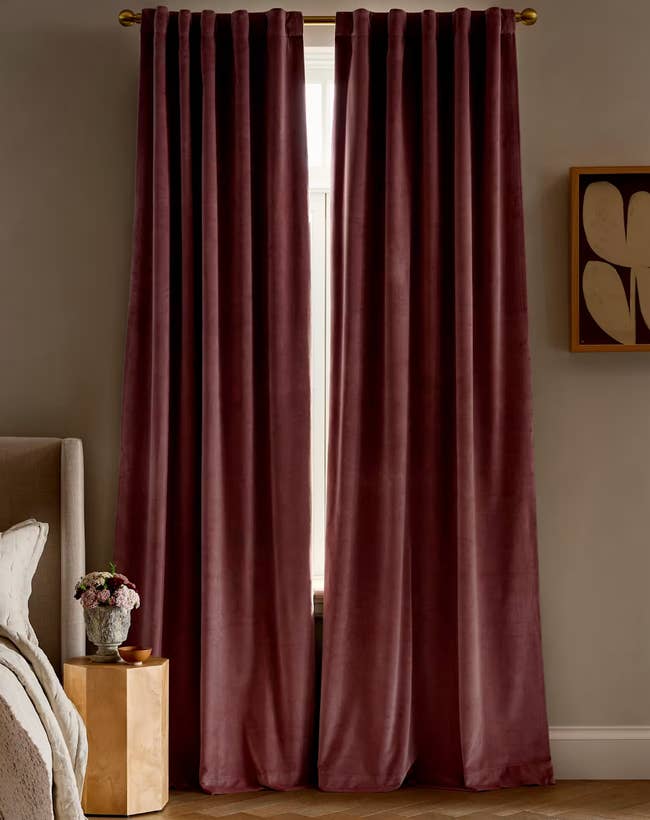 Promising review: "I love these green velvet curtains. They added something warm and cozy to my bedroom. They also helped keep the room darker and warmer than it was previously without curtains. Such a lovely home addition!" —Hannah