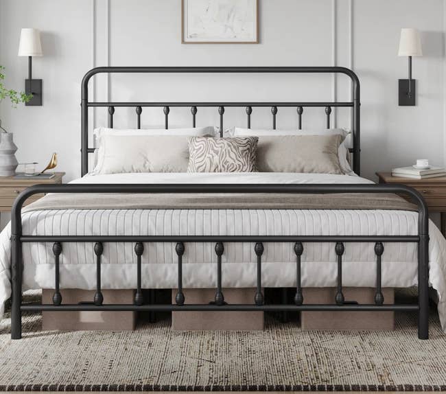 Promising review: "I absolutely love this bed frame! It’s so solid and sturdy. The black finish was beautiful. Just what I wanted. The assembly directions were very precise, and every part was numbered. My daughter and I assembled it in about an hour. I would recommend this bed to anyone who loves iron bedsteads!" —Mary