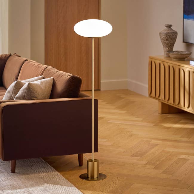 Promising review: "This lamp is the perfect touch to my living room. Not only is it beautiful, but it's easy to assemble and has the perfect lighting. Definitely recommend." —Valenthia