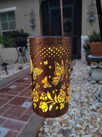 Promising review: "Absolutely love this! I set it up on my front porch. When I came out after it was dark, when it had absorbed the sun, it was beautiful, and cast the shapes of hummingbirds on the ground. It’s the perfect size, shape, and brightness. I think it would also look really nice mounted on a stand-out in the garden! I recommend setting it out in an area that gets at least six hours of sun for the best brightness and lasting light at nighttime." —Cassidy Low