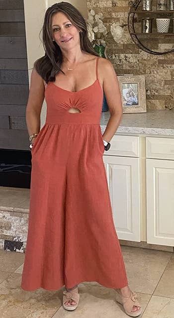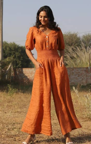 Promising review: "I’m a photographer and wanted a jumpsuit that had pockets and felt comfortable to wear all day! The fabric is very linen-like and light, it was super comfortable to work in this all day. I bought a second one in a different color because I loved the first one so much." —Stacey
