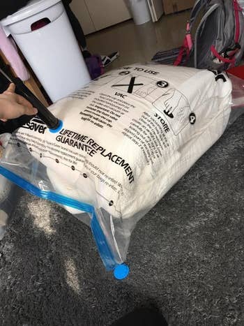 BuzzFeed Shopping editor Jasmin Sandal is a fan: "I swear by these bad boys not only for general storage purposes, but also if I know I'm going to be traveling for an extended period of time. As someone who tends to pack for every eventuality (who doesn't like to be prepared?!), I have learned that it's better to travel with them than without — especially since it's more or less a guarantee that my clothes are gonna take up a ~substantial~ amount of room in my suitcase. And if I can use something that's gonna shrink the size of my bulky hoodies and/or big tees in order for me to create more space, I'm sure as heck gonna do it. Plus, the satisfaction is indeed guaranteed because when you see those chunky layers flatten into a pancake...it's just *chef's kiss*."