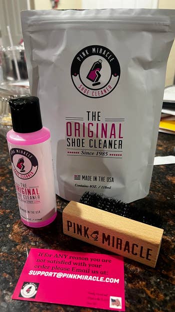 Promising review: "I have had my Nike Roshe runs for about a year now, and I don't go easy on them. I play sports and run in the dirt with them all the time, but I also like to wear them for fashion purposes. Pink Miracle helped restore my daily shoes to look like I just bought them — now I can wear them for even longer. Very pleased with Pink Miracle, I will buy it again when I run out of my bottle." —Romario