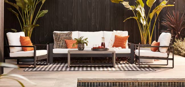 Promising review: "Absolutely love this outdoor sofa! The design elevates my outdoor space and has so much room. I love how easily the cushion covers can be cleaned, and they seem very durable. Very easy and simple to put the furniture together. I’m not sure how the wood will hold up over the long term, but it held up great after one full season. I did purchase Article’s furniture covers — very happy I did this." —Heather D