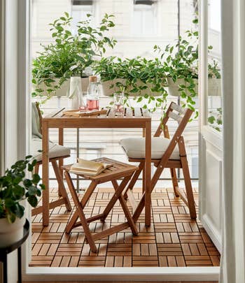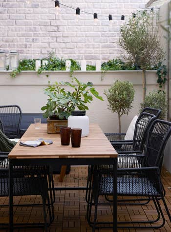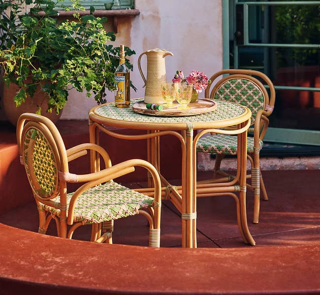 Promising review: "This is just what we wanted for our side yard by the vegetable garden. Now we can dine al fresco while we watch the garden grow. It's the perfect size for 4 people and looks really cute with the black and white umbrella we got to go with it." —Marion