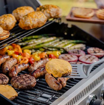 Promising review: "I bought this grill as a Father’s Day gift for my husband, and he absolutely loves it. He’s been wanting a good grill for a while, and this one has been perfect for us. It has four burners, a side burner (he uses it for beans or warming sauces), and a lot of space to cook. He’s already grilled burgers, steaks, and even veggies all at once with no problem. It heats up fast and cooks evenly. The grates are easy to clean, and food doesn’t stick. The side burner is super convenient. It looks really nice and modern in black and silver. It starts right up with the push of a button. Overall, I’m really happy with this purchase and even happier that my husband is enjoying it so much. It’s been great for family cookouts and weekend BBQs." —Dama