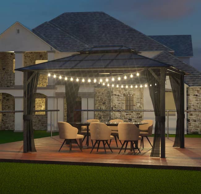 Promising review: "I was originally just looking for a small gazebo to enjoy the summer, but my wife happened to stumble upon this 12x20 monster. The price was right, so I figured, why not go big? It arrived on a truck, perfectly packed without a scratch. Three of us started the assembly right after brunch and worked straight through the evening. We were finally able to sit back and relax. The polycarbonate panels feel solid, and they actually keep it pretty warm in this weather. It was a long day, but totally worth it. Now I’m just waiting for the summer heat so I can grab a lounge chair, slice up some watermelon, and chill." —anonymous