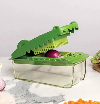 Promising review: "The best tool set I have found. The design is so cute, and all of the attachments are fantastic. Lightweight and easy to store if needed. Whether it's slicing veggies or fruits, or mincing garlic and onion, it really works well! So easy to clean. Blades are SUPER sharp, so be careful." —Amazon Customer