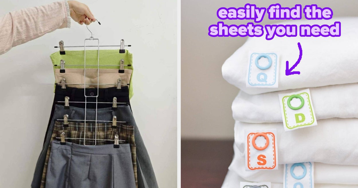 We hope you love our recommendations! While every product is independently chosen by our editors, BuzzFeed and our publishing partners may collect a share of sales or other compensation from the links on this page. You can read more about how our affiliate partnerships work in our Editorial Standards & Ethics Guide. Everything in this post costs less than $40. You’re welcome. Promising review: "I wish I had taken the time to take a before and after pic because I have so much more room in there now than I did before. I found the cutest tops in there that I had completely forgotten about because my clothes were crammed in the closet so tightly. Most of the time, I felt like I had nothing to wear, LOL, and now, I know exactly what I have, and it's even organized by sleeve length and color. I would definitely buy again and actually plan to buy more for my husband and children to use as well." —Mariko Lamb Get a 10-pack from Amazon for $22.90 (available in five colors and a 20-pack). Promising review: "Got this for my daughter to use at college, and it works great. Very strong and well-made, perfect to hang your damp clothes on to finish drying, and will hold a heavy, wet hoodie. Great to use when steaming a dress or suit. Folds up when not in use and definitely space saving." —RM Get it from Amazon for $12.99+ (available in two styles, three colors, and individually or in two- or four-packs). Promising review: "I'm surprisingly satisfied with this organizer! This one is absolutely perfect for my purses. I love the little side 'pouches.' It's super easy to set up, holds up well with added weight, and has lots of different-sized compartments. Love love love." —Nicki cook Promising review: "Great functionality. I gather hangers as I gather dirty clothes. This stacker lives in my laundry room between the washer and dryer. It keeps my plastic hangers under control, and I no longer suffer 'clothes hanger rage' from them getting tangled and not cooperating with me." —msw Get it from Amazon for $26.90 (available in various multipacks). Promising review: "Yes... I have too many clothes. I LOVE my leggings. These saved me soooo much room! Now I have much more space, AND I can see them all easier." —Larry Seymour Get it from Amazon for $9.99+ (available in six colors and in two- or four-packs). Promising review: "These hangers are amazing. They take up minimal space, are sturdy, and, best of all, the clothes don't fall down from them, so it keeps everything looking neat. I have replaced all of the hangers in my closet with these hangers, and I couldn't be happier. I am pretty sure I now have double the amount of space. I love this product and would buy it again." —Vida Maars Get a pack of 30 from Amazon for $15.74+ (available in five colors and in a 50- or 100-pack). Promising review: "We love using this because we have a four-person household, and it’s nice to keep everything separate! They can fill up quickly, which reminds you that it’s time to do some laundry! It’s sturdy and holds a lot, especially kids' clothes! Easy to bring the sections to and from the laundry room." —Adriene Bruce Get it from Amazon for $39.97 (available in five colors). Promising review: "We've been using this for a while now. Our bathroom layout is too narrow for a traditional hamper, but we wanted something near the shower. This can definitely hold a full load of laundry. The design makes it so it doesn't bulge out so much. It keeps its lay-flat design. The zipper is borderline genius. We put a laundry basket underneath and unzip it to transfer the laundry. Nothing ever gets stuck since the zipper is the full length of the bottom. Even with a large load of laundry, the zipper slides easily. It has not pinched or gotten caught on any of our clothes. Helpful." —Leah Get it from Amazon for $11.99+ (available in three colors and two-packs). Promising review: "If you need to Marie Kondo your closet, this is really useful, and it looks really nice. I got the gray ones. Bought two to see how they were. Perfect. Bought six more. Loving it!!! Really recommend this product. Ready to install and very sturdy." —Nicolò R. Promising review: "These are great for closet organization. My husband uses them for his hats and hoodies. He used to just pile his hoodies in a drawer; now he actually hangs them up so they are more visible and easy to grab. I use them for my tanks and camis. So versatile and great quality. Items stay on the hook easily, and they increase storage capacity in the closet." —isk8er Get it from Amazon for $7.49+ (available in three finishes and in two- or four-packs). Snap On Bedding Label is a small business run by Sunny Williams, a busy mom who wanted to spend less time finding the right sheets. The best part? The snap-on labels don't require sewing or ironing, won't damage your sheets, and can be reused when your old sheets need to be replaced. Promising review: "These little snap tags have helped me organize my linen closet in a way I never thought possible! We have white sheets for every size bed in our home and now I can tell the twins from the doubles and the queens from the kings! A tight snap that allows the sheets to go into the washer still tagged — genius!" —Janine Molinaro Get a four-pack from Snap On Bedding Label on Etsy for $15.83+ (available in sizes twin–king). SheetKeeper is a woman-owned small business based in Los Angeles. Promising review: "Great product. Came quickly and they work great! Such a great idea to keep sheets organized and together while being able to tell what size bedding they are. Will order again for sure!" —devonhansen1 Get a set of two from SheetKeeper on Etsy for $11.99 (available in sizes twin—California king, as well as duvet and comforter sizes). Promising review: "This product has been one of my favorite Amazon finds. I’m not sure why I didn’t think of it sooner. It has doubled my closet space in my apartment, where I can’t make any 