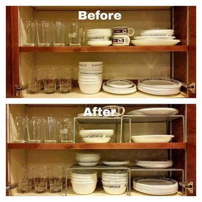 We hope you love our recommendations! While every product is independently chosen by our editors, BuzzFeed and our publishing partners may collect a share of sales or other compensation from the links on this page. You can read more about how our affiliate partnerships work in our Editorial Standards & Ethics Guide. Let’s find all those missed storage ops before you start decluttering. Promising review: "I bought this product in a two-pack for my T-shirts because I hate folding and putting laundry away, and thought it would be a more convenient way for me to keep my clothes organized, and Wow! When I saw how durable and well-made they were, and how much space they saved, and how easy they were to use, I bought more! They were also a great value for the money, and I was able to just walk into my closet and see all my clothes, so they were all visible as soon as I opened my closet, no more searching through drawers. The next two packs I bought, I even used to hang my hoodies; these things are super durable and sturdy. I highly recommend these little darlings for anyone trying to get organized." —Sissy Get a two-pack from Amazon for $12.99+ (available in three colors as well as individually and in packs of four). Promising review: "It has doubled my closet space in my apartment where I can’t make any damage in terms of adding another permanent shelf — so this has been a perfect solution. It was easy to assemble and is sturdy. I’ve had it for a couple of weeks now with no issue. Your closet has to be pretty high for this to work or else your shirts above are going to get caught on the hangers below and for my case, some of my shirts are dragging on the floor — just keep this in mind when you’re thinking about purchasing." —Alex Promising review: "Great product for a great price. Very sturdy, but lightweight and small — under my bathroom sink is *very* small, and the metal frame is thin enough that it doesn't take up much space, and of course it allows me to utilize the empty vertical space instead of shoving things all the way to the back wall. I might rearrange the shelves, but it's just held with screws on each end so that's easy enough to do-comes with two supports for two shelves, but you can choose from four heights/positions. 👍🏻 Might need to order a second for under the kitchen sink..." —Jennifer Mowry FYI, it installs like a regular outlet cover. Of course except with the wonderful shelf. Can also be installed so the shelf is below the outlet. Promising review: "I absolutely love this thing! I have much less clutter on my sink thanks to this. If there's anyone not sure if it will fit due to an object, all you need is 1.25 inches of space between the edge of your existing outlet plate and the piece of furniture. I have a GFCI with a standard wall plate." —Amazon Customer Get it from Amazon for $13.99+ (available in four colors). Promising review: "The expandable shelves I got doubled the area so usefully in my tiny kitchen cabinets! Love them...and will enjoy them for years to come!" —Diana G-B Get it from Amazon for $15.87 (available in bronze and silver). Promising review: "I will spare you the horrific 'before' picture of the complete nightmare that was my closet floor. Just imagine a dusty mess with shoes thrown all over each other in a sad attempt at giving some appearance of order, and you will have a good idea of why buying this shoe organizer was one of the best ideas I've had this year. The floor now looks so neat and tidy I can't believe my eyes every time I open my closet doors." —Veronica, just an average reader, you know? "I really like these for my sports shoes. Doubles my space, and your shoes can air out! Perfect!" —Lewlu Get a set of 10 from Amazon for $29.99+ (also available in packs of 20 and 40). Yep, you're looking at my shower! I upgraded from a corner tension rod caddy and never want to go back. The mesh pockets drain water so your liner won't get all icky. And they make it easy to tell the difference between the minimalist packaging for your face wash and shave cream when it's way too early in the morning. Read my full review of Maytex Pockets Shower Curtain Liner (#2) to learn more about why I'm in love with an object that can't love me back. Promising review: "I love this shower curtain for my small bathroom. It literally doubled my storage space. I use it facing outwards and with an inner shower curtain, which makes cleaning easier. Really, such a useful product for small bathrooms." —Emk Promising review: "Using this in our pantry to hold our many tumblers! Holds everything perfectly and will be getting another for all our plastic ones at some point!" —Megan Walters Get it from Amazon for $14.99 (available in two sizes and four colors). Homelux Theory is a small biz specializing in home solutions. Promising review: "Very pleased with product quality. Fits perfectly over the linen closet door, which almost doubles the storage. Recommended!" —Cindy Reidland Get it from Amazon for $26.99 (available in six colors). Promising review: "This shelf doubled my storage space and makes it easy to reach everything without digging through the whole cabinet." —JBird Get it from Amazon for $25.99 (available in 10 colors). Check out how they work on TikTok! And PS: Wonder Hanger is a small biz! Promising review: "I wish I had taken the time to take a before and after pic because I have so much more room in there now than I did before. I found the cutest tops in there that I had completely forgotten about because my clothes were crammed in the closet so tightly. Most of the time, I felt like I had nothing to wear, LOL, and now, I know exactly what I have, and it's even organized by sleeve length and color. I would definitely buy again and actually plan to buy more for my husband and children to use as well." —Mariko Lamb "I bought one set and loved it so much that I bought another set. My closet looks more organized, and the space