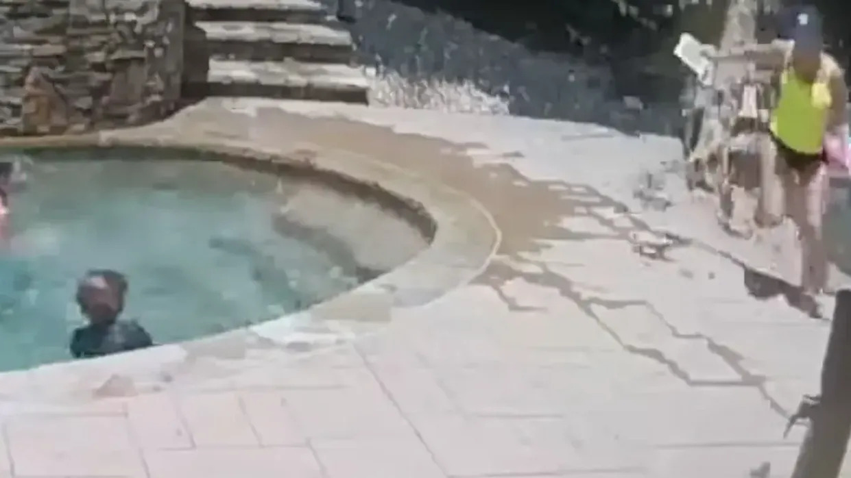According to the video, the mother was lying poolside in a lounge chair, reading a book, while her sons splashed in the pool nearby. Suddenly, a cracking sound echoed through the yard.