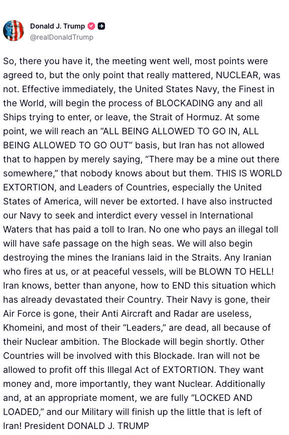 Trump Threatens Strait Of Hormuz Blockade After US-Iran Ceasefire Talks End Without Agreement