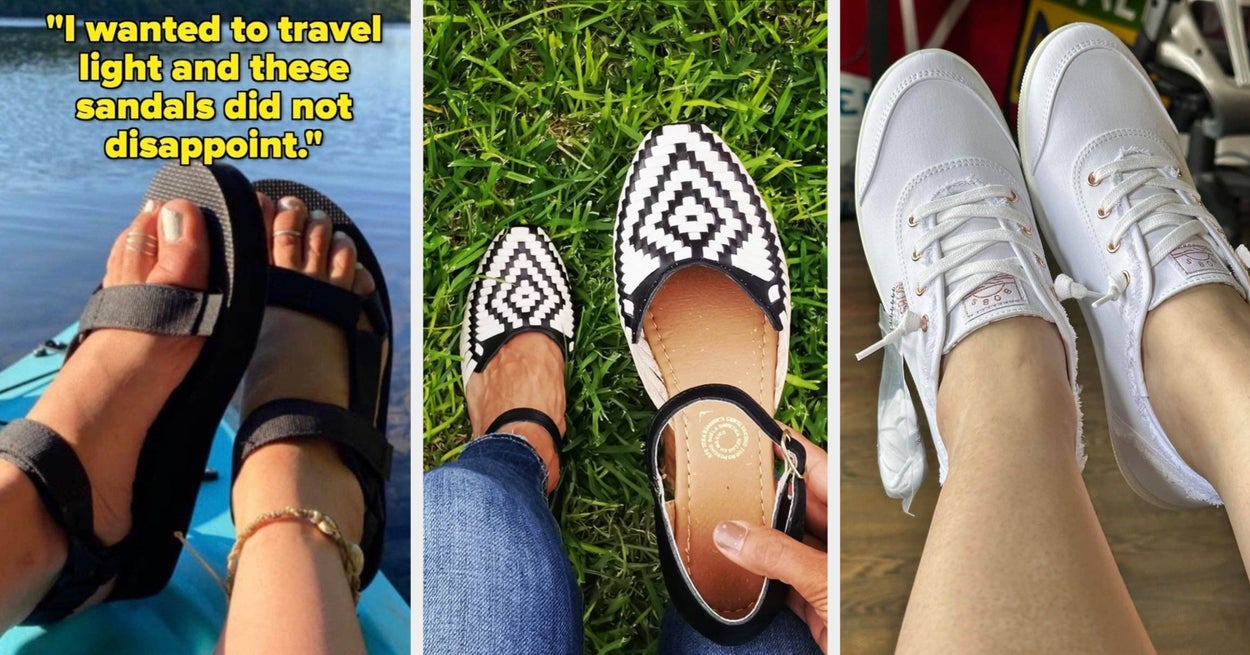 We hope you love our recommendations! While every product is independently chosen by our editors, BuzzFeed and our publishing partners may collect a share of sales or other compensation from the links on this page. You can read more about how our affiliate partnerships work in our Editorial Standards & Ethics Guide. Get ready to find your ~sole~ mate in one of these cute ’n’ comfy pair of shoes. Unless otherwise specified, all sizes in this post are listed in women’s. Promising reviews: "These shoes are super comfortable and supportive. I used to play pickleball on hard court surfaces with tennis shoes with little padding. I developed sore feet, which had a term — plantar fasciitis!! These New Balance tennis shoes with thick memory foam inserts saved the day! I can keep playing the game I love, and my foot pain is nearly gone! Best tennis shoes ever! And they come in wide too, which makes the fit perfect!!!" —Library "I love these! They are the perfect dad sneakers and super in style! I love the blue color as well. They’re comfortable, great quality, and they provide a lot of support. They’re true to size as well." —Stephanie Russell Get them from Amazon for $51.20+ (available in sizes 5–12, including narrow and wide sizes, and four styles). Promising review: "I walk for exercise. I go to the gym three times a week and walk one mile around the track. I also walk at home on off days. They are comfortable and fit well. I think they will hold up. Thank you to Christian, who listened to my needs and suggested this shoe." —Susanlovesart Get them from Hoka for $155 (available in women's sizes 4–12, including regular, wide, and X-wide, and 19 colors) or Amazon for $150+ (available in women's sizes 4–12, including regular, wide, and X-wide, and six colors). I spent three weeks traveling through eight different European cities, and let me tell you — bringing these sandals with me was probably one of the best decisions I've ever made. My most worn pair of shoes during my trip, hands down. The reasons I was on the hunt for comfy sandals were 1. I didn't want my feet enclosed all day while trekking the whole city in warm weather, and 2. Some outfits simply pair better with sandals. I hiked up to the Acropolis of Athens in these babies, and that stone floor was slippery. And still, out of my group of 11 family members and friends, I was the first one to make it to the top (and yes, I did brag). I even told two of my friends that went with me to get these for the trip, and they were eternally grateful for my rec. Promising review: "As someone who owns several pairs of Birks, these sandals are absolutely up to the expectations of real Birks! The Birks I have are the Arizona soft footbed. I wanted this style of Birks, but I couldn’t find the soft footbed version of them. I saw these and thought I might as well try them for the price. Let me tell you, these are even comfier than my soft-footbed Arizona Birks! Omg, they feel amazing. They are nice and padded! They are so adorable, too! Great quality." —Lee Get it from Amazon for $33.24 (available in women's sizes 5–12, two widths, and 19 colors). Here's what BuzzFeed Shopping contributor Brittany Ross says about them: "I bought these boots last year and they quickly became the ones I reach for whenever I'm not wearing sneakers. They're SO comfortable (I've worn them walking around both NYC and Europe for hours on end), and that bit of extra height makes 5' tall me feel like I can take on the world. They're also ridiculously cute and worth every cent of what they cost, thanks to their durability and versatility. I've worn them in the rain and never once worried about slipping! Best of all, they look great with a casual jeans look or gussied up with a slip skirt, which I've paired them with on many occasions. I know they'll last me a long time, but I'm already certain I won't hesitate to buy a replacement pair when they finally give out. 10/10, buy them! Oh, and FYI, they run a little big, so consider sizing down!" Promising review: "I have been wearing Docs for years now, and this pair has to take first place for comfort. They're incredibly cute and versatile, can be dressed up or down, and just like any other pair, are faithfully durable. Docs always run big, so I sized a full size down and still comfortably wear them with thin-thick socks. I brought them on a long trip, wore them in various weather conditions like rain/snow/forest trails, and they worked great." —Stacy Cruz Get them from Amazon for $88.51+ (available in sizes 5–11). Promising review: "I live in the desert and noticed our upcoming trip to London had rain in the forecast nearly every day. I didn’t want to walk around in wet tennis shoes, and we were planning a trip with heavy walking. I have problems with plantar fasciitis, so I was skeptical. I usually buy expensive, supportive shoes. But I took a chance. These boots did not disappoint. I ended up wearing them every day in London. They were very comfortable, my feet stayed dry, they were super cute, and the best part, ZERO foot pain. We walked a lot, 7–8 miles a day. I will put these in my closet for other rainy-day trips!" —volvomom Get them from Amazon for $29.99+ (available in sizes 5–12 and 11 colors). Promising reviews: "They felt weird the first time I put them on…but as I started walking in them, it got better! Usually my feet are killing me by the end of the day, or I’m just super sweaty in my dress shoes, but these are like walking on a literal CLOUD ☁️ and they let my feet breathe!" —Alyssa "Literally the BEST shoes ever! So comfy. I spent a whole day at Disney with no complaints. Normally, I'm tired after two hours of walking in the park, but with these babies, I was up and walking alll day with no problem." —Katherine Get them from Amazon for $22+ (available in sizes 5–11 and four colors). Promising review: "I traveled to Belize for a girls' trip. All six of us ordered 