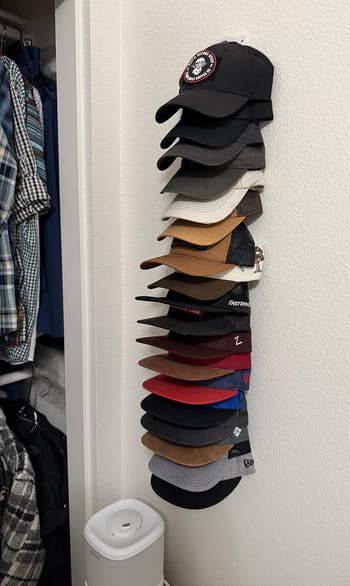 Promising review: "Super easy to install and came with two different ways to hang: screws and a double-sided high-quality tape. It stores many, many hats for my bald husband. It's a great price for the quality of the product. I'll be buying more because my husband won't stop buying hats." —Jam