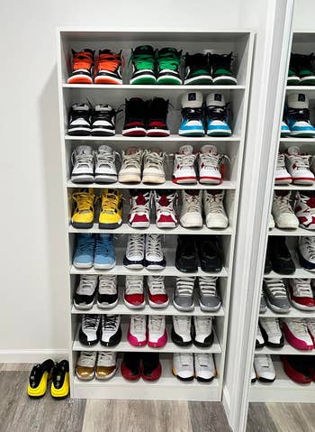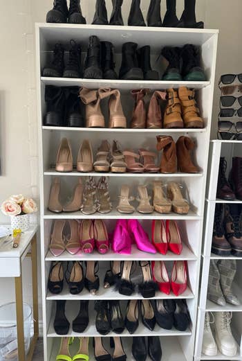 Promising review: "This cabinet is perfect for my small space, and I’m planning to buy a second cabinet. I have many shoes and needed something that not only stored, them but also looked good. I got both. Each row holds five pairs of shoes, and the space is wide enough to fit my sky-high heels, which was a major concern after a previous cabinet did not work out." —Demi Lightbody