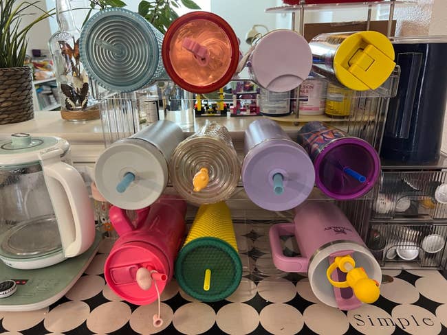 Promising review: "Great organization solution. I love how sturdy and stable this organizer is. The thick plastic support panels ensure that it doesn't wobble or crack, even when fully loaded with bottles. It fits a variety of bottle sizes and is easy to assemble. I use this organizer not only for water bottles, but also for storing travel mugs, coffee cups, and sports flasks. It's a versatile storage solution for my kitchen." —Carey Chouchou