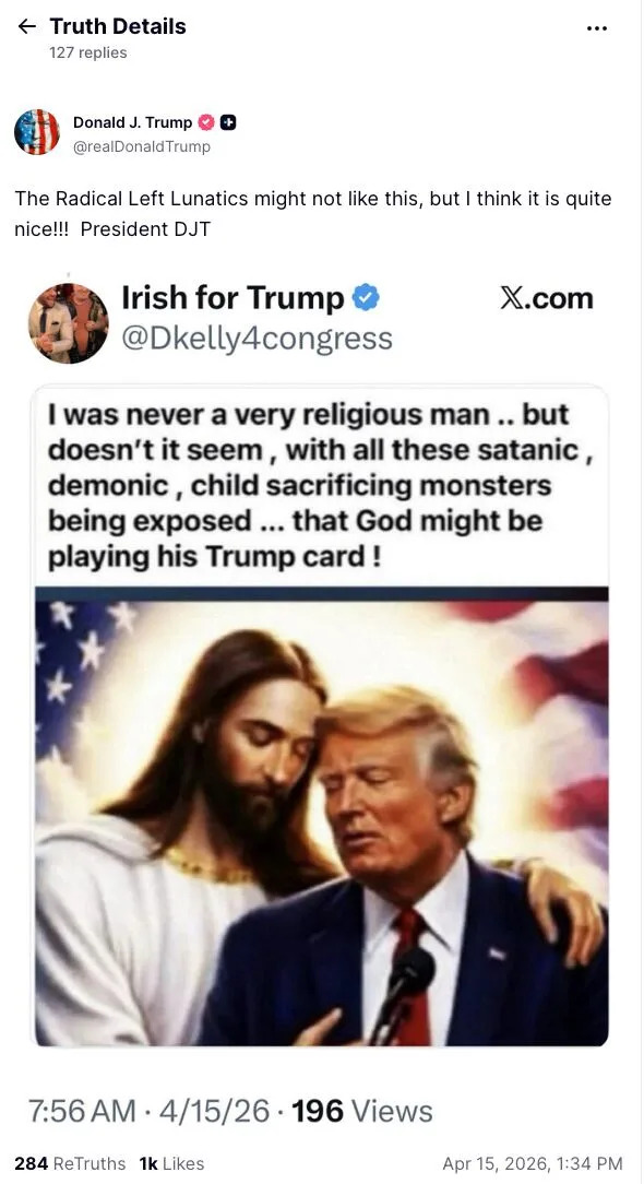President Donald Trump’s bright idea to post a bizarre AI-generated image of himself as Jesus Christ may not have been entirely his own. The 79-year-old president had reportedly discussed the blasphemous fake photo with his controversial head of the Federal Housing Finance Agency, Bill Pulte, before posting it to his Truth Social account, Axios reported Wednesday night. Two advisers who spoke to the president about the picture told the outlet that Pulte, 37, brought up the image to Trump while the two were in South Florida together over the weekend, though it was unclear whether Pulte pulled it up on his phone or sent it directly to the president. “Everyone thought it was a joke,” one adviser said. Another adviser who is cozy with Pulte told Axios that the housing finance chief and Mar-a-Lago club member did not give the meme to Trump. The Daily Beast reached out to the White House and the FHFA for comment. Pulte has quietly stirred up trouble behind the scenes throughout Trump’s second presidency, even getting on the nerves of some of his fellow administration officials. At a MAGA dinner event in September, Treasury Secretary Scott Bessent threatened to punch the 5′8″ housing czar “in the f---ing face,” even suggesting the two go outside so Bessent could “f---ing beat [his] a--,” Politico reported. Pulte has also reportedly been instrumental in inflaming the president’s ire toward Fed chair Jerome Powell, as he has put pressure on Congress to investigate the Federal Reserve chief for “political bias” and “deceptive Senate testimony.” The Trump attack dog was also the brilliant mind behind the administration’s short-sighted, short-lived idea of 50-year mortgages, which the president later ditched after it drew scrutiny. On Sunday, the president puzzled both critics and supporters alike when he posted an AI-generated image on Truth Social, which seemingly depicted him as Jesus Christ. The picture showed Trump wearing a Christ-like robe, seemingly healing a sick man on a bed below him by touching his forehead with glowing, golden hands. The president deleted the post on Monday, then defended his decision to post it with an equally absurd excuse. “It’s supposed to be me as a doctor making people better,” Trump said, after having McDonald’s delivered to the Oval Office by the “DoorDash Grandma.” “I did post it, and I thought it was me as a doctor—it had to do with Red Cross, there’s a Red Cross worker there, which we support.” “Only the fake news could come up with that one (the depiction of Jesus),” he added. “I just heard about it, and said: ‘How did they come up with that?” The post enraged even the president’s most staunch supporters, including 19-year-old MAGA influencer Brilyn Hollyhand, who called the image “gross blasphemy.” Two days later, on Wednesday morning, the president posted yet another blasphemous image, this time of himself standing with the Son of God. “The Radical Left Lunatics might not like this, but I think it is quite nice!!!” Trump captioned the post.