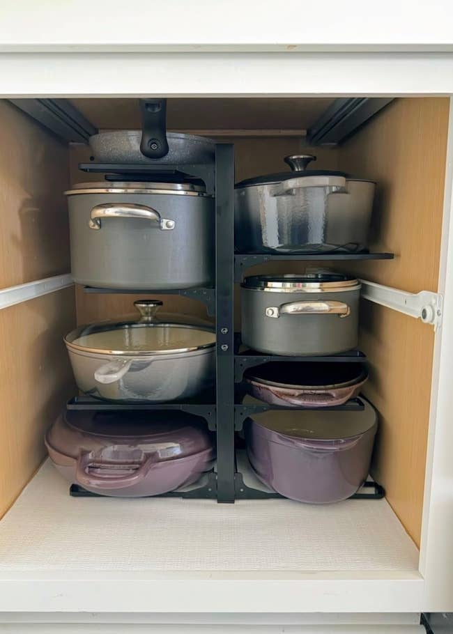 We hope you love our recommendations! While every product is independently chosen by our editors, BuzzFeed and our publishing partners may collect a share of sales or other compensation from the links on this page. You can read more about how our affiliate partnerships work in our Editorial Standards & Ethics Guide. Use every last inch of storage space you’ve got without turning your cabinets and drawers into an overstuffed abyss. Promising review: "The LAMU turntable is a game changer in the world of kitchen organization! This ingenious product has become a 5-star essential in my home. The standout feature is the effortless way it brings order to my refrigerator. No more reaching or rummaging to find items — just a quick spin, and everything is at my fingertips. The 360-degree rotation is a game-changer, making it a breeze to access even items tucked away in the back. The build quality is superb; the turntable feels sturdy and durable. It accommodates various sizes of jars, condiments, and containers with ease, adding a level of versatility that enhances its overall utility. Installation is a no-brainer, and the sleek design doesn't take up unnecessary space. It's like having a mini-revolution in my fridge, making daily tasks more efficient and enjoyable. Whether you're a culinary enthusiast or just looking to streamline your kitchen storage, the LAMU turntable is a must-have. It's functional, durable, and brings a touch of organization magic to your refrigerator. It gets five stars without a doubt!" —Secret Angel Get it from Amazon for $19.99+ (available in two sizes and packs of two). Promising review: "I had this in my cart so long because I felt silly buying an organizer for kitchen pots. I’ve tried many times, but that just didn’t work. Holy cow! This organizer saved me stress. I no longer dread opening the kitchen cabinet and pulling out every pan, pot, and lid that my roommates threw in, looking for the one I wanted. When I put everything else back, I didn’t want to cook anymore. Now, I can get exactly the pan or pot (with the matching lid!) right away, and roommates who only use the pot can leave the lid on the shelf so it stays clean. This organizer has seriously saved me!" —J Get it from Amazon for $21.99+ (available in nine sizes and finishes). Promising review: "Great quality! These help me make better use of a very deep, but narrow cupboard. I was wasting half the space because it was nearly impossible to reach into. This organizer was very easy to install and took about 10 minutes. I chose to install it with the screws rather than the adhesive pads. I also chose not to use the side “rails” for supporting pan handles since I’m only using them for lids. The ball bearings glide very quietly and smoothly. My only regret is not ordering it sooner." —Amazon Customer Get it from Amazon for $24.99+ (available in three colors, two formats, and two pack sizes) Promising review: "I use this to organize my purses. Before, I would just throw them on top of each other on a shelf in my closet, which made it hard to find what I wanted and made it look so messy. I can customize the width of the space between the dividers to fit any size purse. The dividers make it easy to organize purses of different sizes, styles, and colors. Removing them from my closet and putting them back is so easy." —Tess Get it from Amazon for $48+ (available in two colors). Promising review: "What a fantastic idea! These storage boxes keep my linens covered, sorted, and organized. No more lopsided, falling piles of sheets." —Amazon Customer Get it from Amazon for $18.38+ (available in four pack sizes and eight colors). Promising review: "This is an awesome set!! They are quality, heavy-duty stainless steel with a matte finish. Both the cups and spoons have every measure you need to accomplish your task. Ever wish you had that 3/4 teaspoon (or cup) measure? These have it! Now, I can get rid of the odd-ball measuring cup and spoon 'sets' that were never really enough for one reason or another. These don't take up much space, and I love the magnetized spoons and leveler! No more having to wash all the spoons on a ring because you used one. And the convenience of having the round and oval shapes is wonderful! If you're looking for a measuring set with everything, this is the one!" —Amazon Customer Get it from Amazon for $32.99+ (available in five colors). Promising review: "If you can call a hanger beautiful, these are beautiful. The wood is finished, the hardware is sturdy, and they're easy to put together. I could hardly believe how heavy the package was when I picked it up. I've tried hangers for multiple garments before; either it was impossible to get one garment off, or the weight of the garments made the whole thing sag. Not here. I loaded five pairs of wool pants on a hanger without a problem. The way it can swing up to hang from the clothing rod makes it easy to access each item. I will be buying more of these." —Karen McCallum Get it from Amazon for $18.98+ (available in three pack sizes and four colors). Promising review: "This charging station has been a game-changer! It’s perfect for charging my iPhone 16, iPhone 15, and Apple Watch at once. The MagSafe feature makes it super easy to just snap my phone on, and the setup is sleek and organized. No more cable mess, and it looks great on my desk! If you want an efficient, clutter-free solution for multiple devices, I highly recommend this. Worth every penny!" —Karbunty Get it from Amazon for $28.99+ (available in two colors). Promising review: "I never knew how many beautiful pieces I had until I saw them laid out in these beautiful boxes. I have six of them." —Eve Get it from Amazon for $21.99+ (available in nine colors). Promising review: "This is the best product I never knew I needed! Spices and baking products that once took up two shelves in my cabinet now fit on one, giving me much more room for other pantry staples