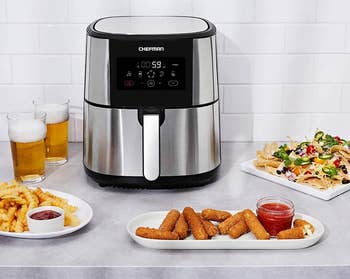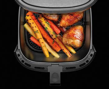 Promising review: "I bought this guy when it went to $50, and it was the best purchase decision I've made! This is my first air fryer, but it's super easy to set up, use, and clean. The eight-quart capacity can fit an entire chicken if needed, and it comes with a divider in case you need to make several things. I ended up getting two, and now my friend wants one too!" —Jasmine