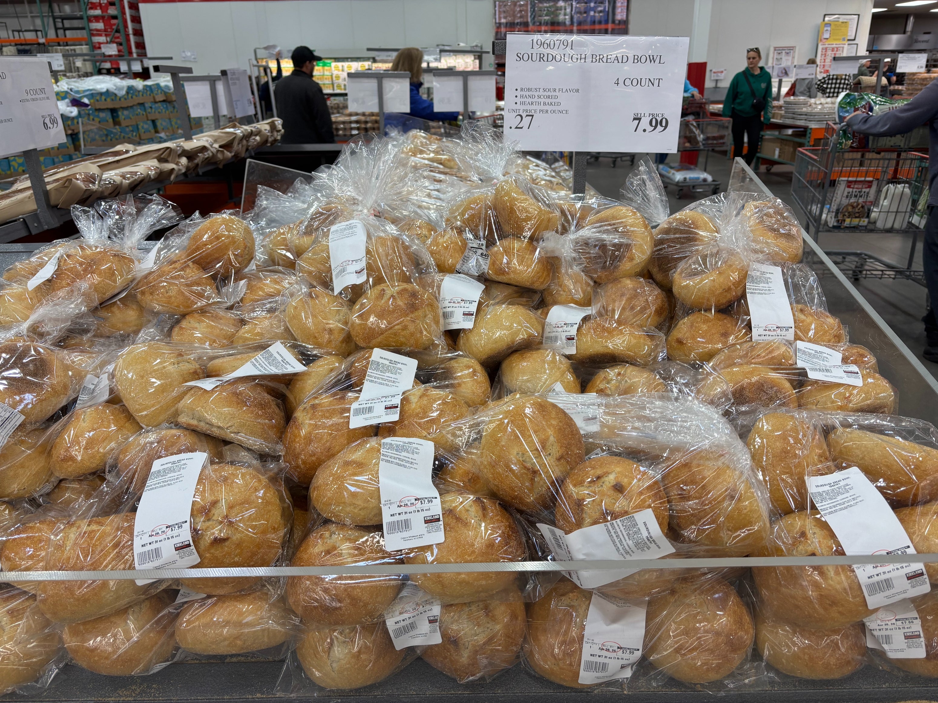 Costco has officially entered the sourdough game. Patty is a food and drink writer/editor whose work has appeared in Eater, Food Network, The Kitchn, and more. Slice of Costco's Kirkland Signature Blueberry Sourdough Bread on top and Whole Foods Market's Heritage Grain Sourdough Boule on the bottom.
