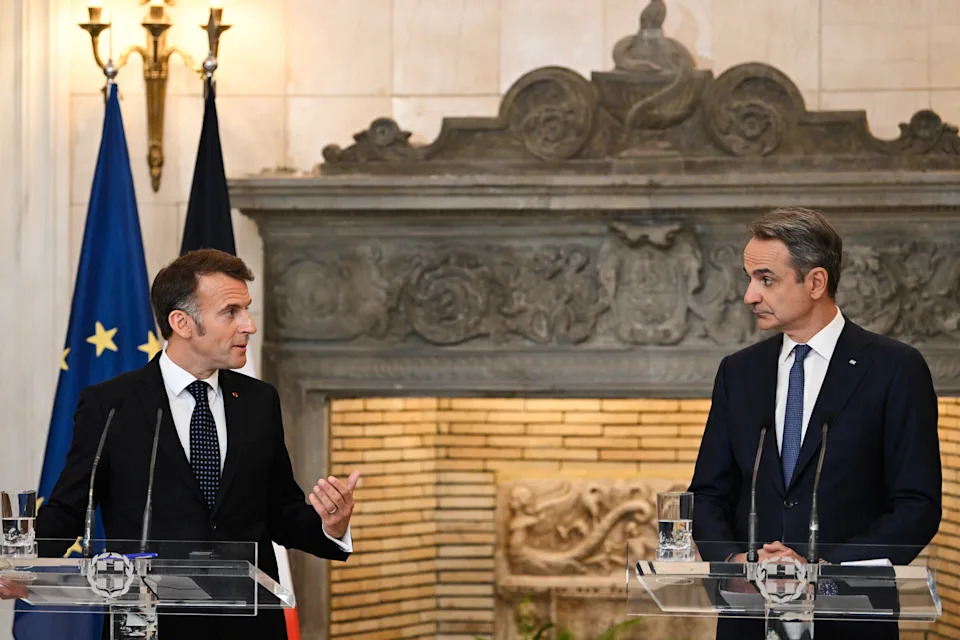 “The lesson we must draw is, let us no longer be dependent,” Macron said after talks with Greek Prime Minister Kyriakos Mitsotakis. “We Europeans must strengthen this European pillar of NATO, we must strengthen this Europe of defense — not against anyone, not as an alternative to anything.”