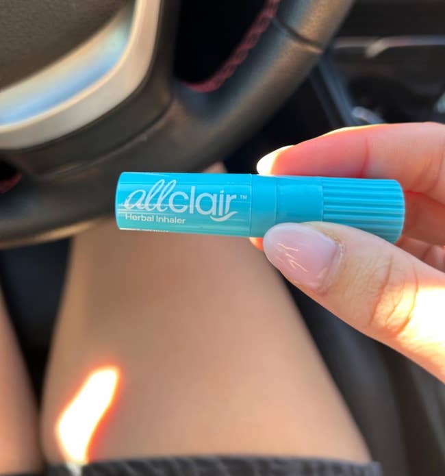 Promising review: "I get nauseous often, and I always have this on me. Whether it's carsickness or anxiety, something will set my stomach off. This always brings me quick relief! I love that it comes in a two-pack. It's so easy to use. Something that sets this apart from other 'boom sticks' is that the Allclair stick is double-sided and has a roll-on/dab-on peppermint oil applicator on the bottom. This is great for applying oil to my temples, around my nose, on my neck, or anywhere else I may need it. It's so easy to use, and it works well. It's a good quality product, and I've used it over and over again. It's great. It's easy to use, the design is user-friendly, and it's a quick way to find relief. Use it in moderation, don't get the oil in your eyes, and you'll have a great time." —MJ