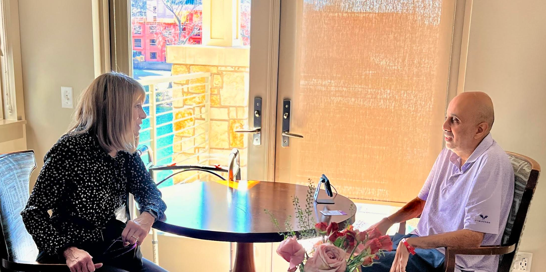 The author with hospice nurse Dusty King in 2024 at T. Boone Pickens Hospice Center in Dallas.