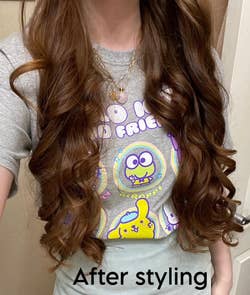 Promising review: "If I could give 10 stars I would!! This is the best curling tool I have ever used on my hair. I have long, thin, straight hair that does not hold a curl no matter how hard I try. It was fairly easy to use after watching the tutorial video, and I slept with it in. It is super comfortable and I slept with no issues. I was stunned when I took it out in the morning. I will definitely be using this frequently!!" —Janelle