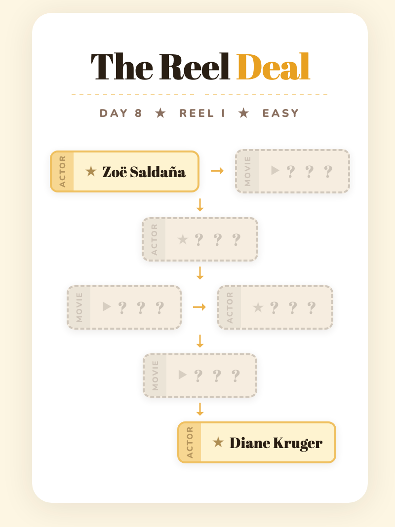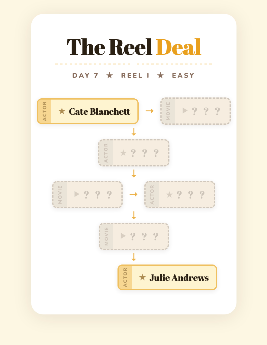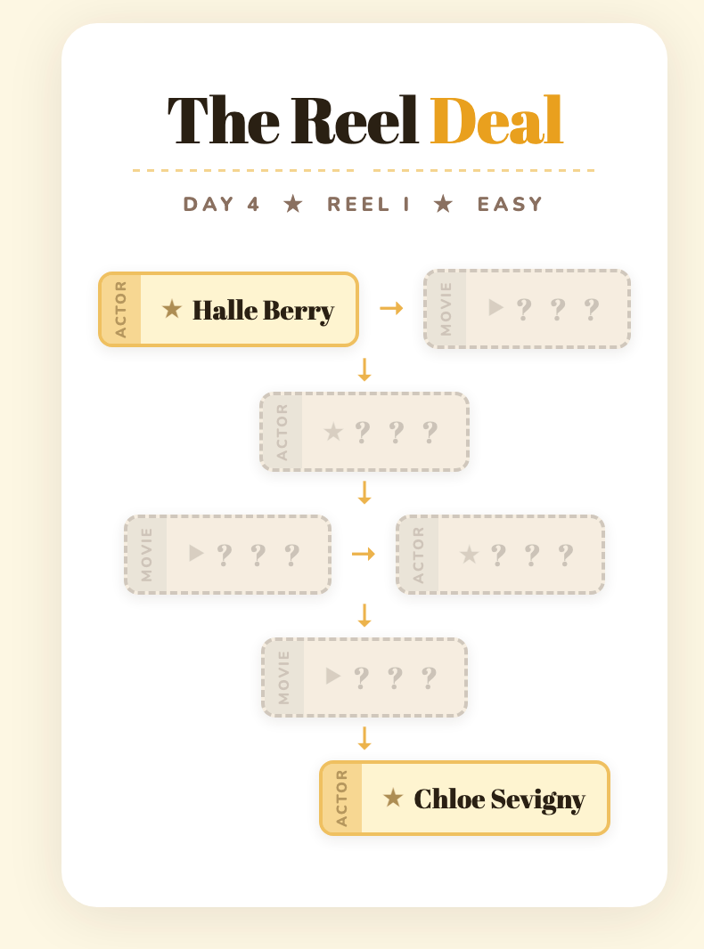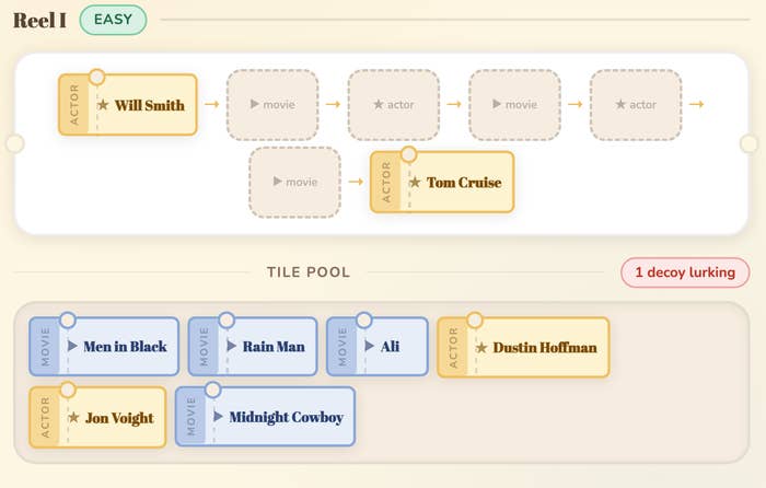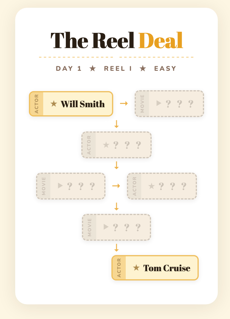 All of BuzzFeed’s The Reel Deal movie chain puzzles in one place. New puzzles drop daily at 10 a.m. ET. 🎬 As the Deputy Editorial Director of Pop Culture at BuzzFeed, I oversee our celebrity and entertainment coverage.