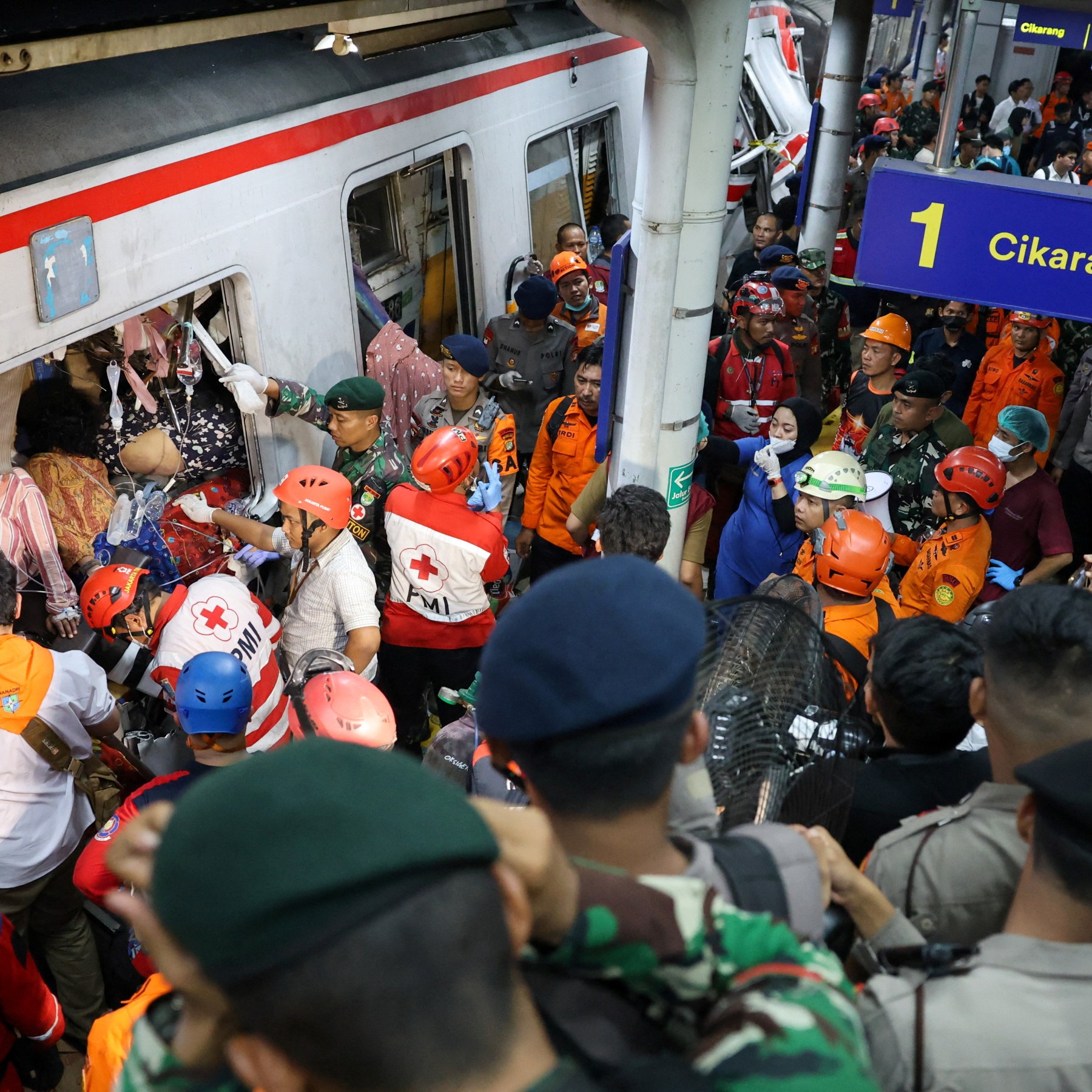 Emergency workers need to work “slowly” to cut away wreckage and free those trapped inside the mangled carriages, Syafii said, according to Kompas.com.