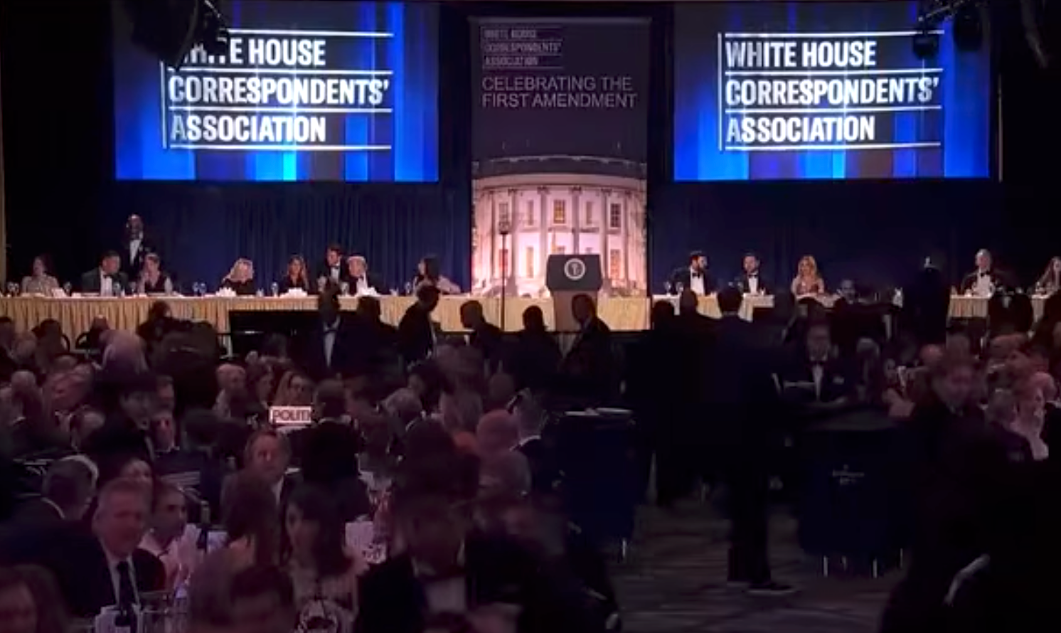 The president said he “wasn’t making it that easy” on law enforcement after agents swarmed the stage in response to shots fired outside the ballroom.